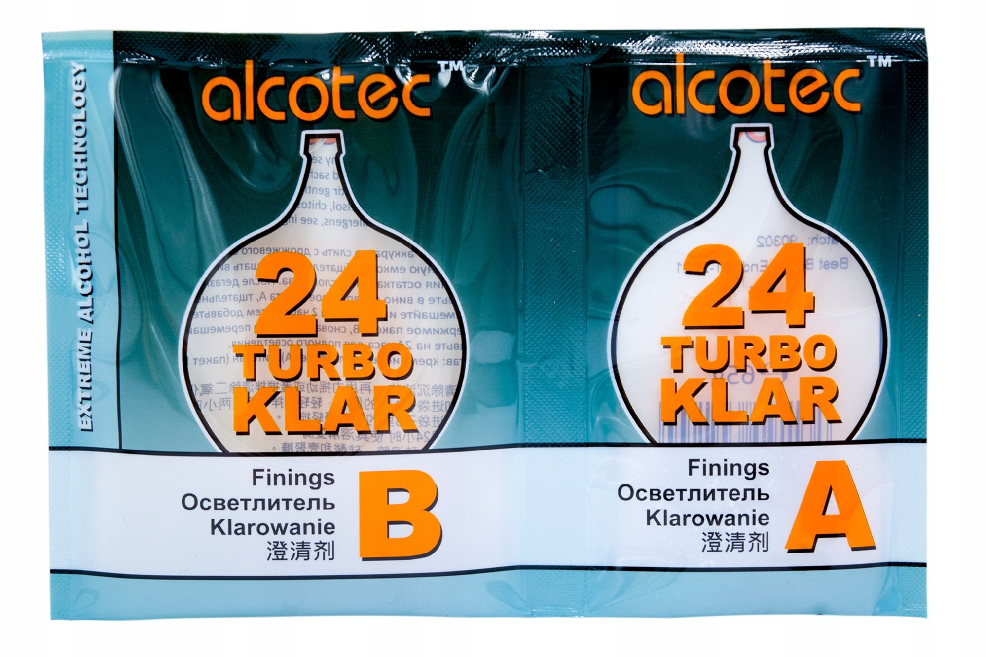 two-component fining agent for wine or turbo yeast wash. It will normally clear anything in 24 hours although some particularly difficult turbo yeast washes such as those from Alcotec 24, may require 48 hours.