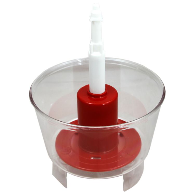 Used for rinsing bottles, can be used with the 80 bottle drainer. Fill the bowl with water or steriliser and push the bottle down on the spring loaded pump. Liquid is jetted into the bottle.
