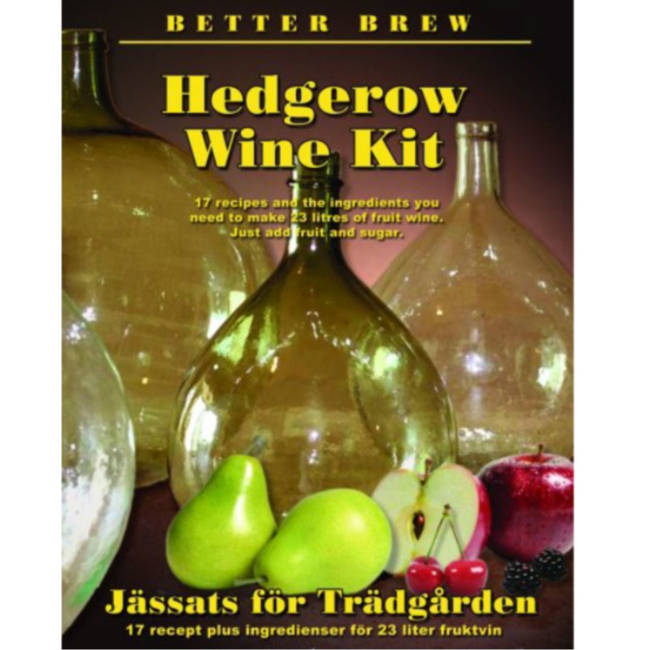 The Hedgerow Wine Kit contains all ingredients you need to make your own wine from the fruit in your garden or foraged from the hedgerow. Just add the fruit itself plus of course sugar and water, we provide the rest including the recipes and the instruction how to do it!